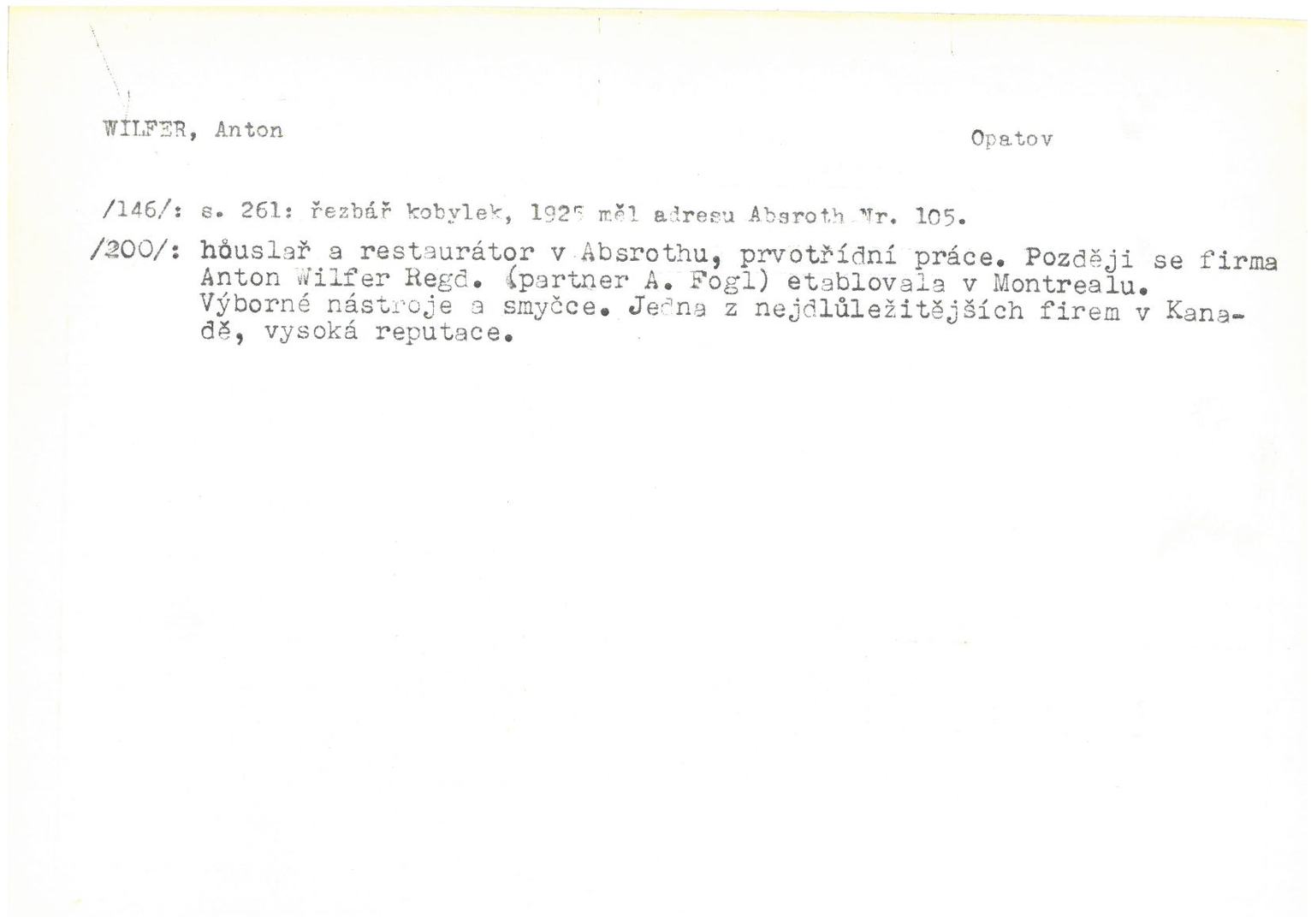 Wilfer, Anton V